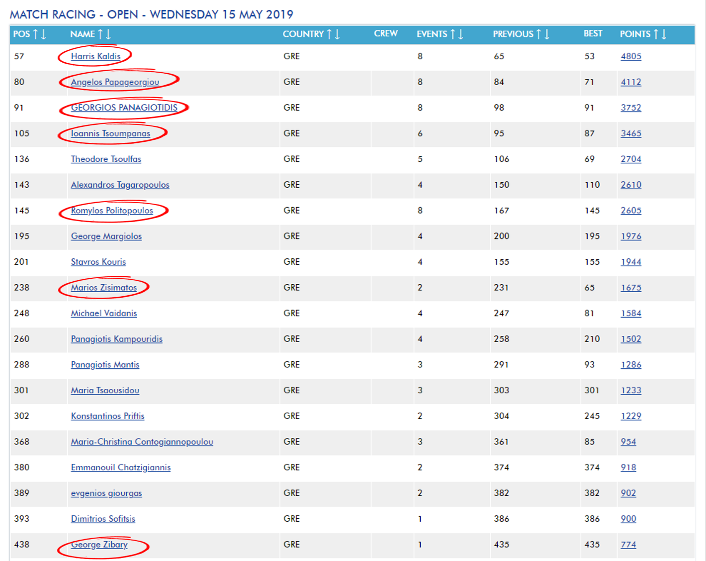 Στις 15/5 ανακοινώθηκαν από την World Sailing τα ανανεωμένα παγκόσμια rankings στο match racing. Σαν αποτέλεσμα της συντονισμένης προσπάθειας και του υψηλού επιπέδου προπόνησης που γίνεται στο sailing spot, δυο ομάδες, αυτές των Καλδή και Παπαγεωργίου, βρίσκονται στις κορυφαίες 100 του κόσμου! Φυσικά βρίσκονται στην κορυφή της λίστας αν κανείς φιλτράρει την κατάταξη για την Ελλάδα μόνο.