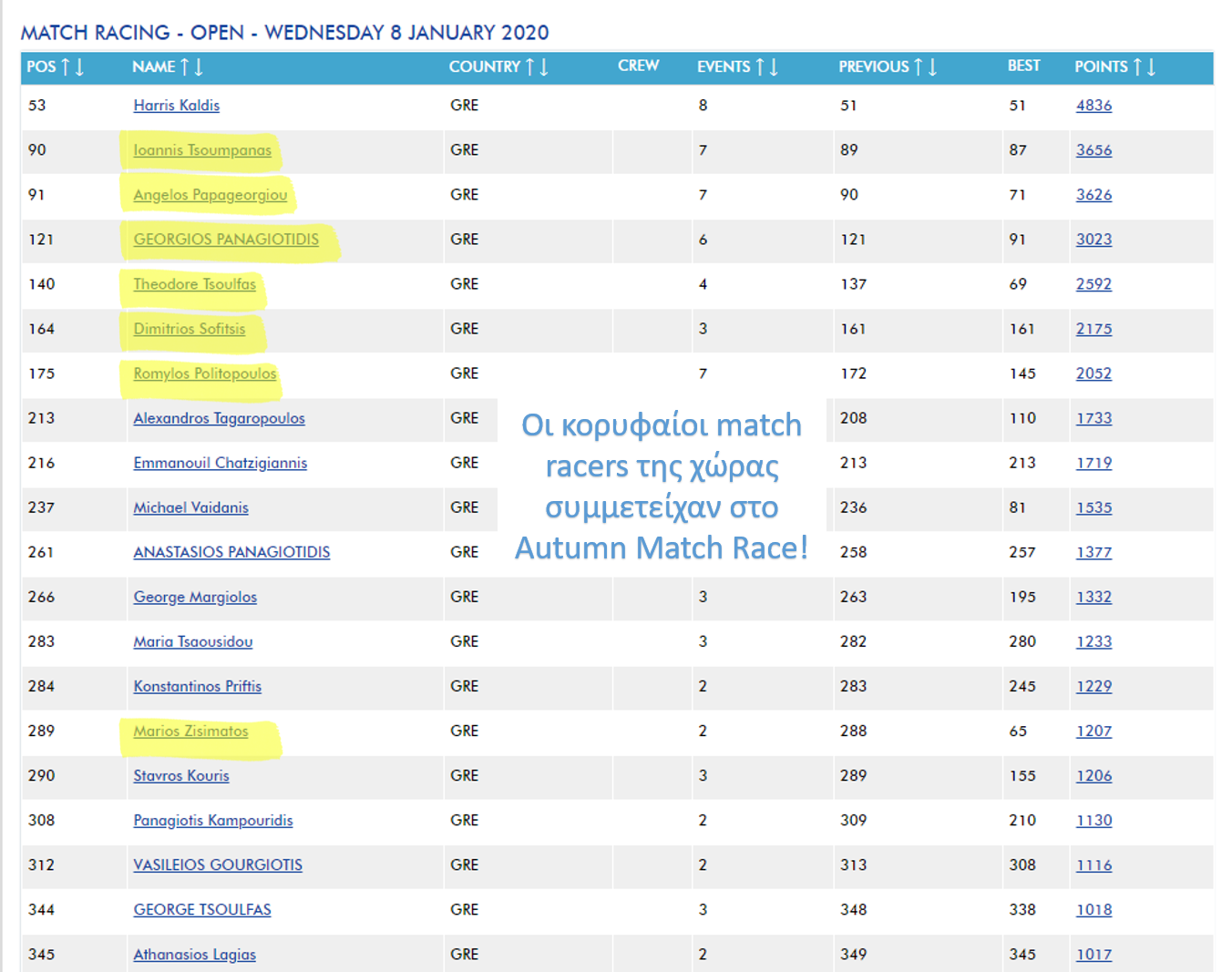 Οι ομάδες ανανέωσαν το ραντεβού τους για την επόμενη φάση του πρωταθλήματος, το Winter Match Race στις 1 και 2 Φεβρουαρίου το οποίο θα έχει και διεθνείς συμμετοχές.